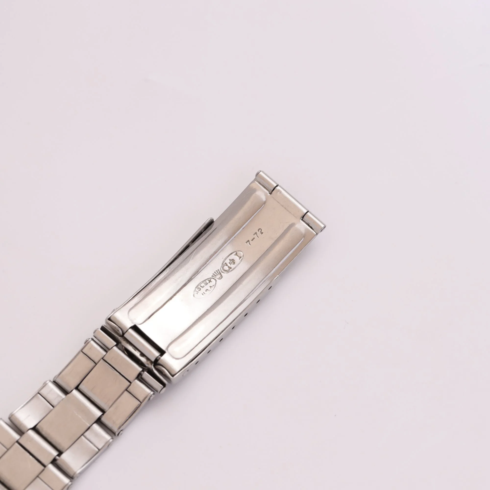 Bracelet: Original USA C+I rivet bracelet with fixed endlinks in very good condition, showing only light stretch for it’s age. Fitting easily up to a 18,5cm wrist. Clasp is marked 7-72 (1972).